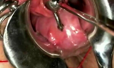 schöne brünette hügel sind gequält und vagina von einem spekulum gestreckt