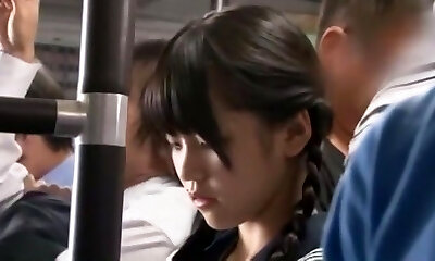 Japanische Schlampe bekommt zusammengepfercht in einem überfüllten öffentlichen bus
