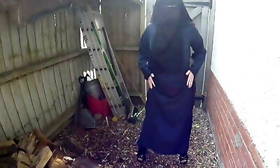 Niqab Tart! Fette Moslemnutte strippt im Hinterhof!
