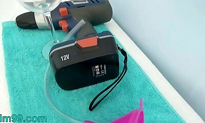 Chinese hoe screwed with sex machine in hardcore gangbang
